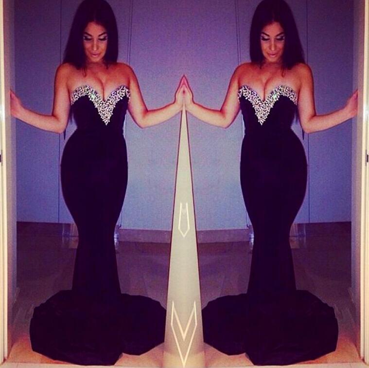 Sweetheart Neck Mermaid Chiffon Prom Dresses Crystals Women Dresses