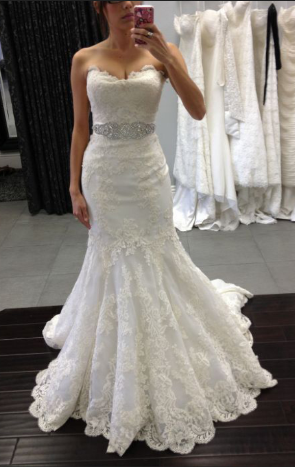Mermaid Lace Wedding Dress Strapless Beaded Floor Length