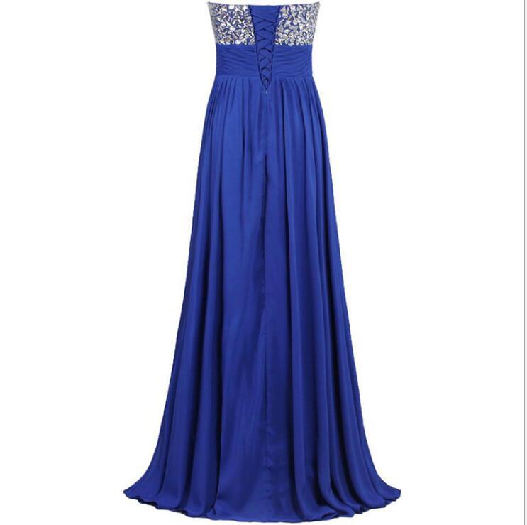 Strapless A-line Long Royal Blue Chiffon prom Dress Sequin Women Evening Dress