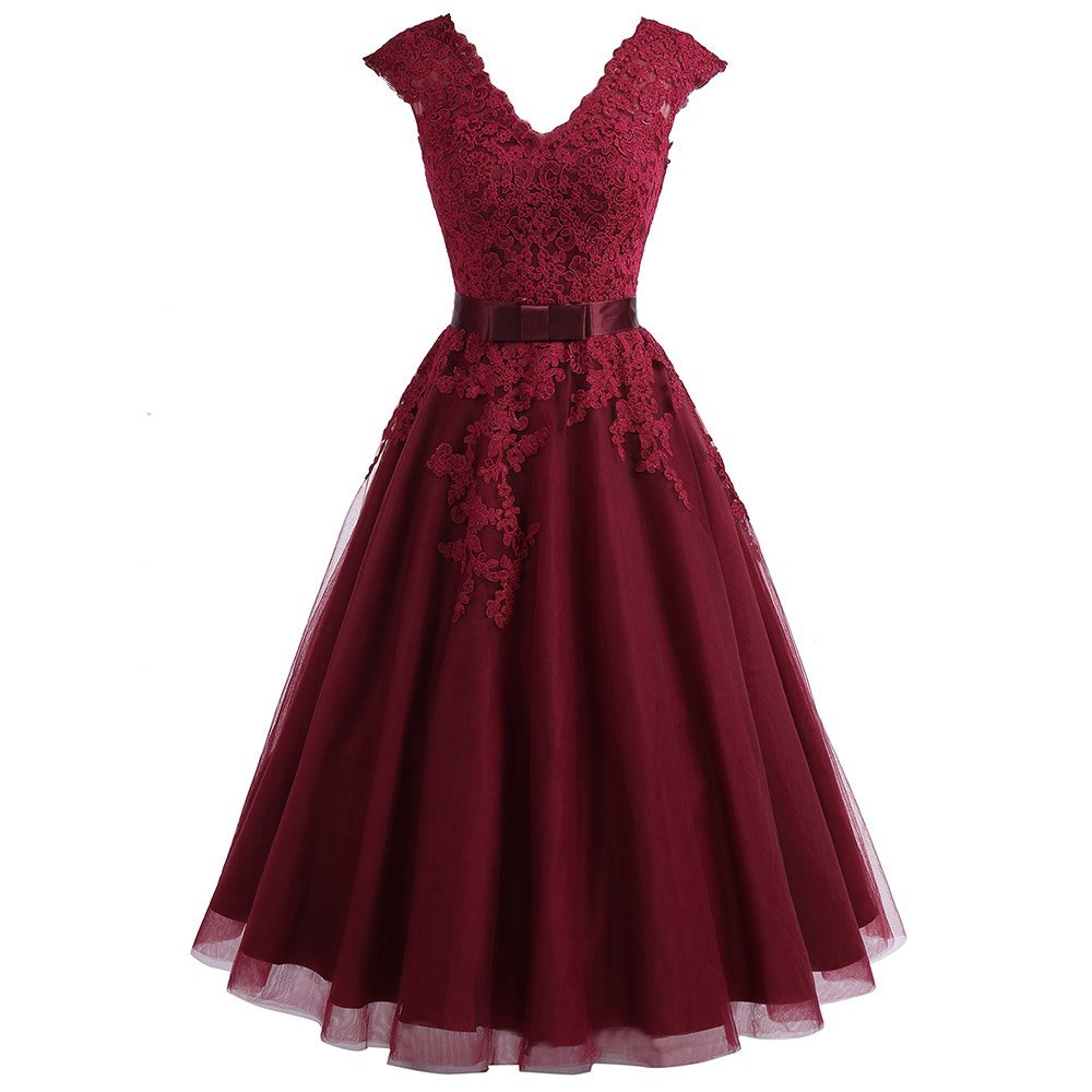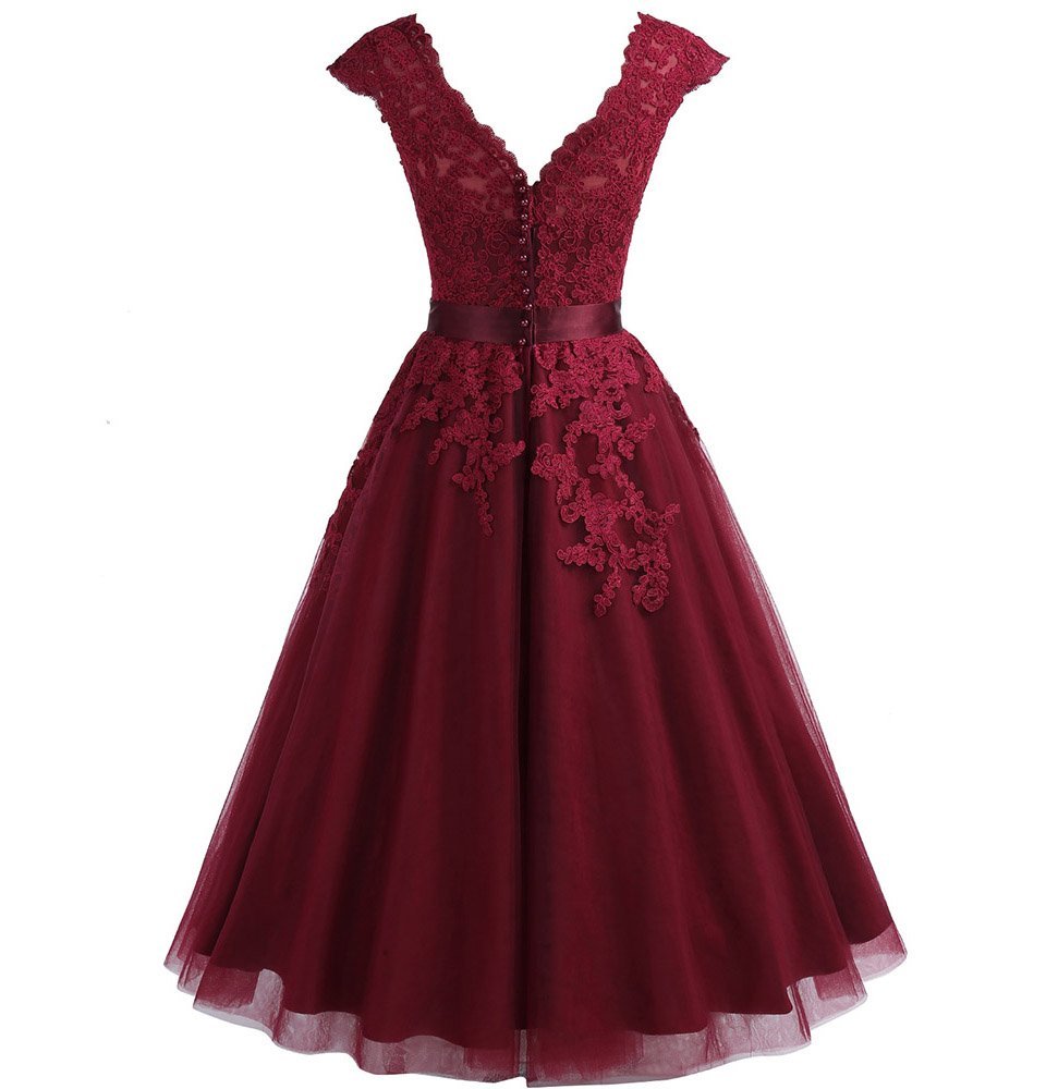 Cap Sleeves Knee Length Tulle Homecoming Dress Lace Appliqus Women Party Dress