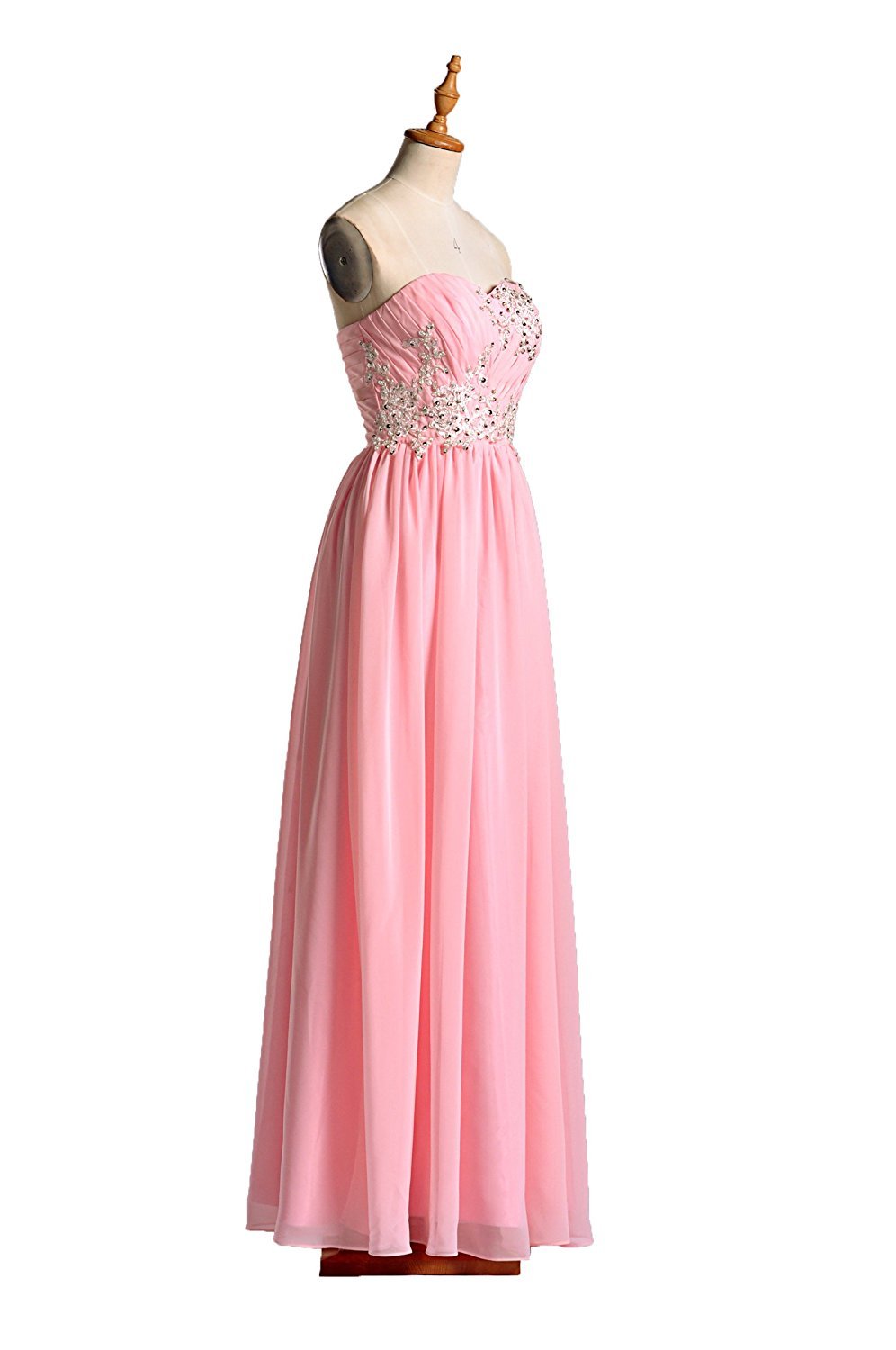 Strapless A-line Pink Chiffon Prom Dress beaded Pleated Women Floor Length Women Dress